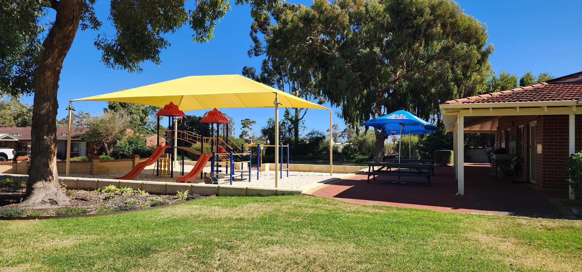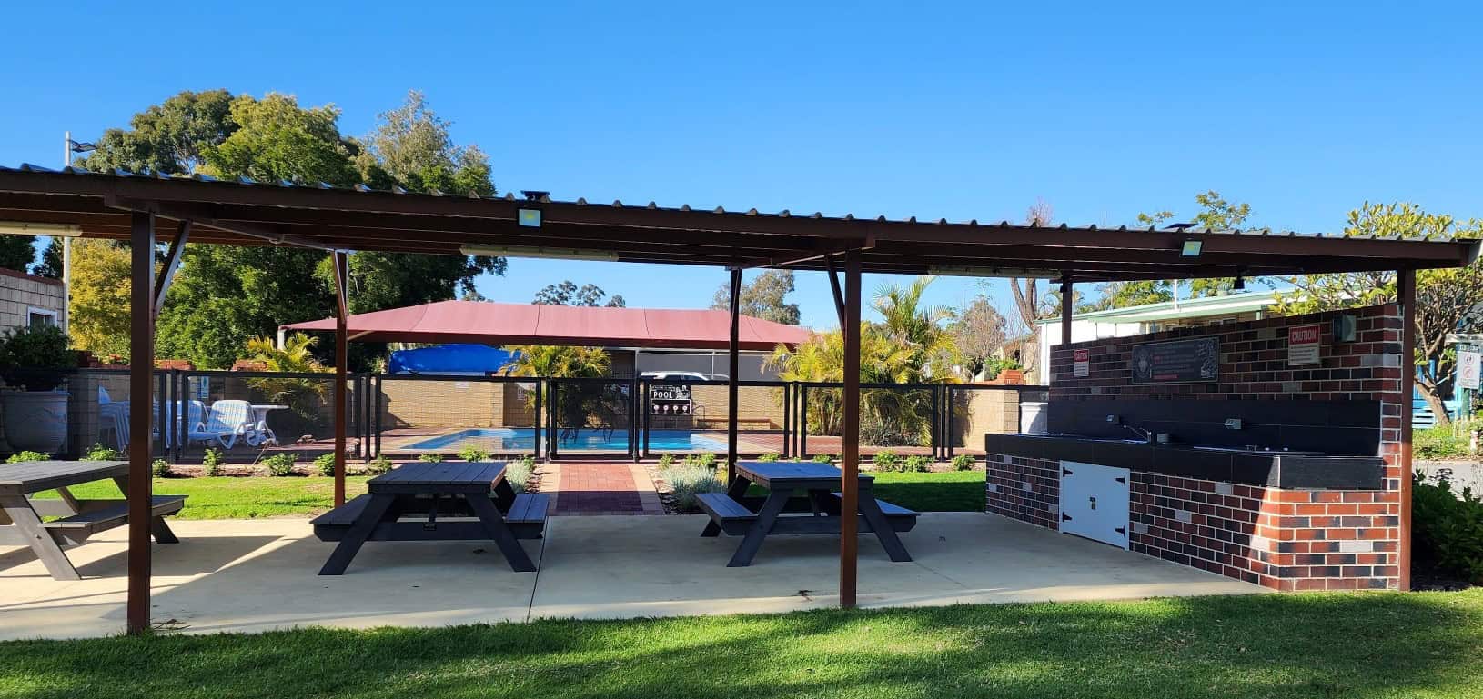 Enjoy our amazing facilities including a café style camp kitchen, luxurious lounge and recreation room, undercover playground, grand pool, gazebo barbeques, doggy day care, dog walk areas and laundries.
